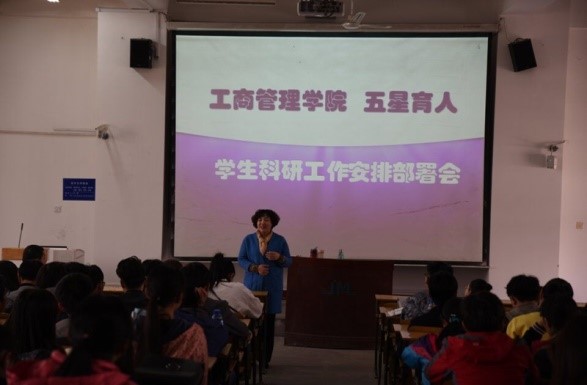 首先,王雅琪对年度员工科研活动进行汇总,就申报对象、立项和结项时间、项目类别及成果形式四个方面向大家做了详细介绍,同时对“挑战杯”等三个重点科研大赛的赛制、赛程安排、参赛要求等进行了细致的讲解。随后,员工代表李超由三个问题引出做科研项目的目的和优势,邓琳向同学们介绍了科研项目资源的获取渠道及在科研过程中数据处理和资源应用问题。最后,贾喜环作总结发言,鼓励大家积极投入到科研工作中。