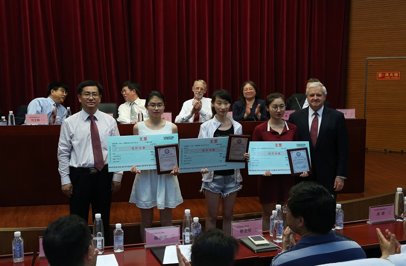 陈亮常委、托马斯董事长为托福奖学金同学颁发奖金及奖牌