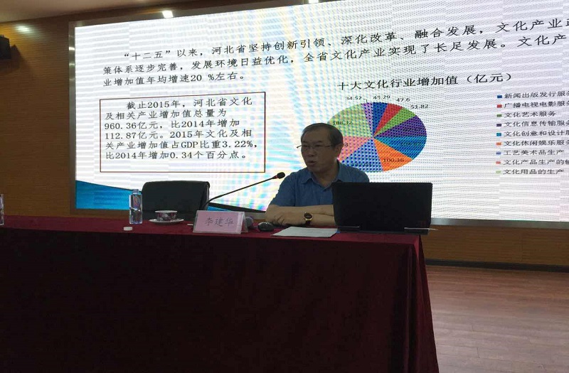 之后,李建华厅长做了题为《河北文化产业发展前景》的专题讲座。他从我省文化产业发展现状、问题和挑战、优势与机遇、文化产业发展“十三五”规划、京津冀文化产业协同发展五个方面进行了深入分析。李厅长指出,2022年京张冬奥会的成功申办和雄安新区的设立,既为我省文化产业的发展带来了史无前例的机遇,也带来了创新协同发展体制机制的挑战。京津冀文化产业研究所要抓住机遇,探索出突破三地协同发展难题的路径方法。吴国英经理对讲座做了精彩点评。