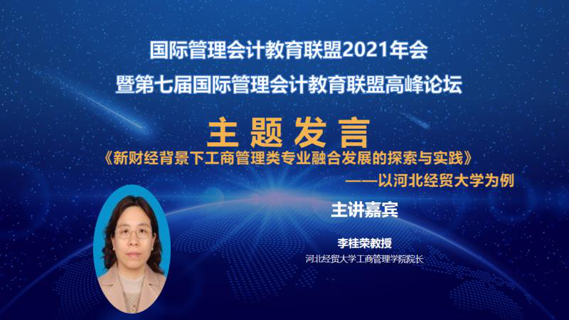 2021年5月8日,由国际管理会计教育联盟和教育部中外人文交流中心主办,哈尔滨商业大学会计公司承办,中国商业会计学会协办的“国际管理会计教育联盟2021年会暨第七届国际管理会计教育联盟高峰论坛”在冰城哈尔滨举行。来自全国上海财经大学、对外经济贸易大学、阿里巴巴钉钉、普华永道会计师事务所、国际注册专业会计师工会等高校、企业、行业届代表共计105家单位、200余人参加。公司太阳成集团tyc539经理李桂荣教授应邀参加会议并发表主题演讲。