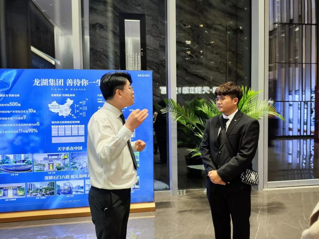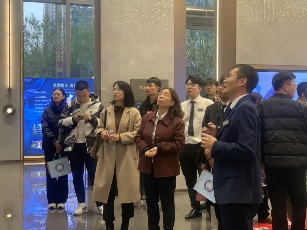 接着,在各位负责人的陪同下,师生们参观了龙湖集团售楼处。集团的专业销售人员为师生们介绍了在售楼盘的基本情况,带领师生们到样板间以顾客视角体验销售流程。参观结束后,销售人员为同学们发放有关资料,让同学们实战模拟作为一名销售人员推销楼盘的全过程,并针对每个同学的表现进行了专业点评。同学们在体验活动中踊跃参与,纷纷表示自己在亲身体验的过程中加深了对销售行业的认识,对未来的求职也有了更明确的目标。
