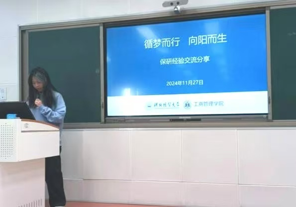 已经获得保研资格的2021级周李楠同学从自身经历出发,结合对公司推免文件的解读,为学弟学妹们系统介绍了保研准备过程、各种注意事项以及四六级备考要点等。她强调了专业成绩的重要性,鼓励大家精心选课,认真上课,并从六大方面分享了提升专业课成绩的做法。最后,她鼓励同学们在注重学业成绩的同时,积极参与学科竞赛、撰写科研论文、参加调研项目等实践活动,以提升自身学术能力。