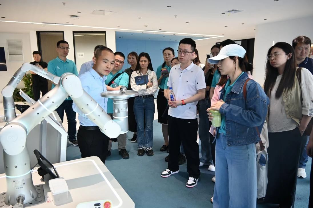 非夕机器人高级销售经理陈伟华带领同学们参观了产品展示区和研发实验室,同学们还现场观摩了机器人的操作演示,其灵活精准的动作,以及对复杂任务的高效完成能力,让大家切实体会到智能机器人为工业生产带来的高效、精准与无限可能,深刻领悟到其在现代工业中无可比拟的关键作用。