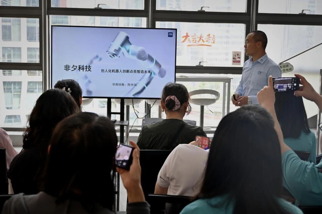 随后的座谈会上,陈伟华详细介绍了非夕机器人的发展历程、核心技术以及各类机器人产品的应用场景,如在汽车制造领域助力生产线自动化,在3C电子行业实现精密零部件的精准装配等,并就机器人行业的发展趋势,以及非夕在技术创新、市场拓展方面的经验和挑战等话题进行了分享。