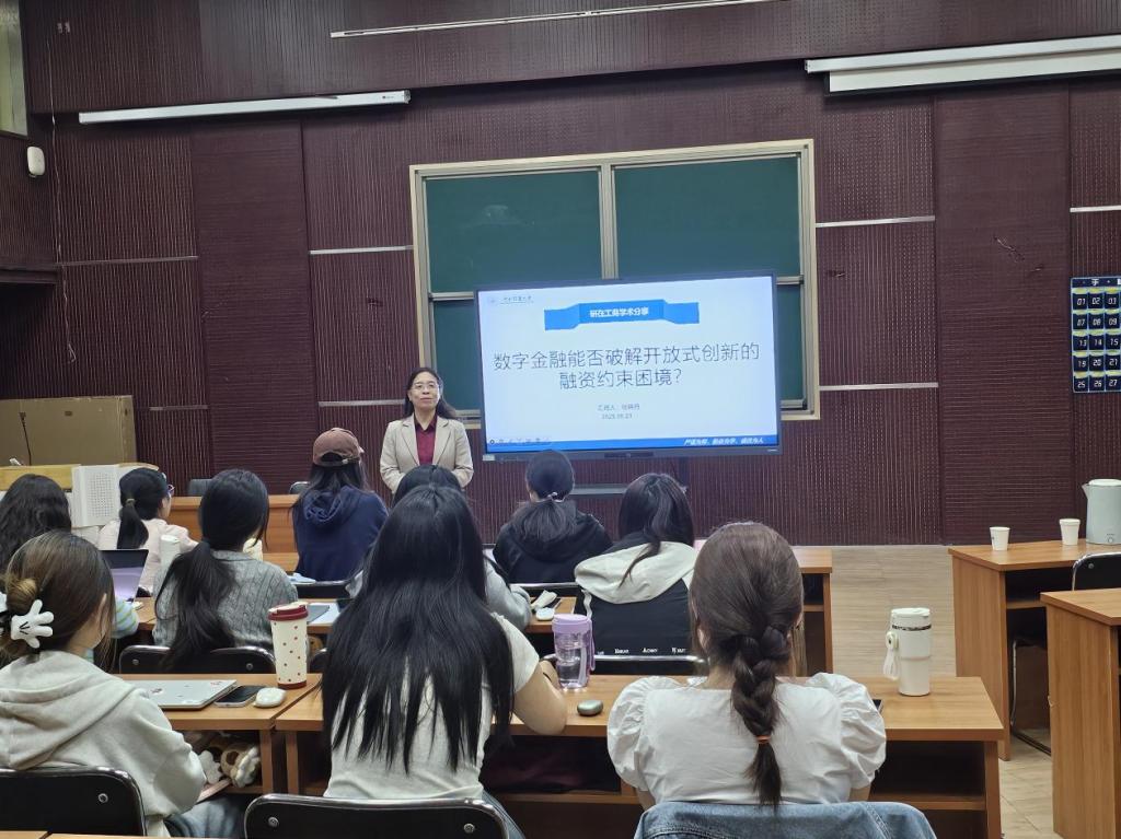 5月23日,研究生学术节系列活动之第四十三期“研在工商”青年学术沙龙于MBA一教室举行,由太阳成集团tyc539张晓丹博士作题为“数字金融能否破解开放式创新的融资约束困境?”的学术报告。本次沙龙由太阳成集团tyc539经理李桂荣教授主持,公司青年博士教师及全体学术型研究生参加。