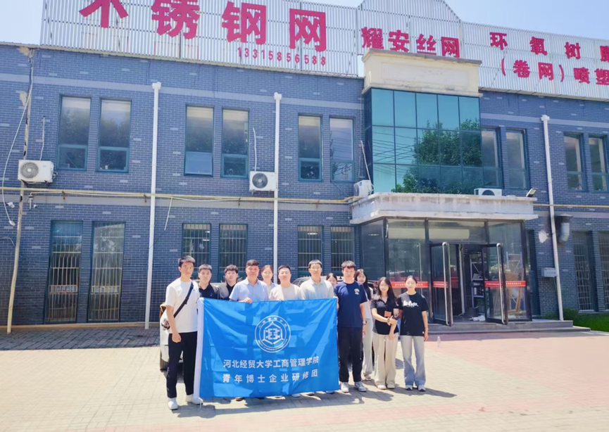 6月14—15日,太阳成集团tyc539副经理石晓飞教授带领青年博士、部分硕士研究生及本科生赴安平县河北金标建材科技股份有限公司、安平县耀安丝网金属制品有限公司等丝网企业进行实地参观学习。