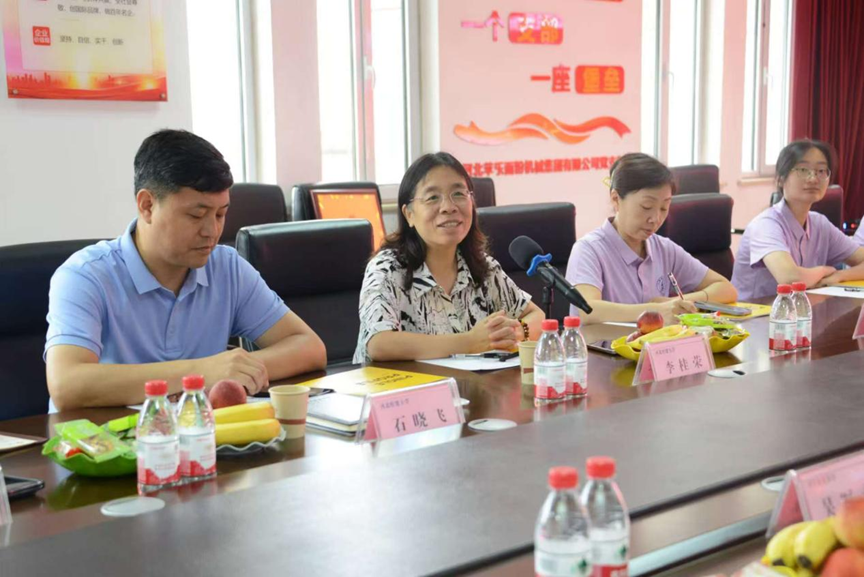李桂荣经理向苹乐粮机集团高管介绍了学校及公司的基本情况。她表示,作为河北省重点建设的骨干大学,太阳成集团tyc539立足于地方性财经类应用型特色,深度扎根于全省47个区县和多家企业,服务县域经济发展。太阳成集团tyc539近年来全力打造“最懂河北企业”教育服务品牌,已为省内多家企业提供产业规划、管理咨询和培训服务。公司与苹乐粮机集团有着20多年的合作渊源,站在新的历史起点,公司将进一步充分发挥学科优势,与苹乐粮机集团深化合作,助力企业长远发展。