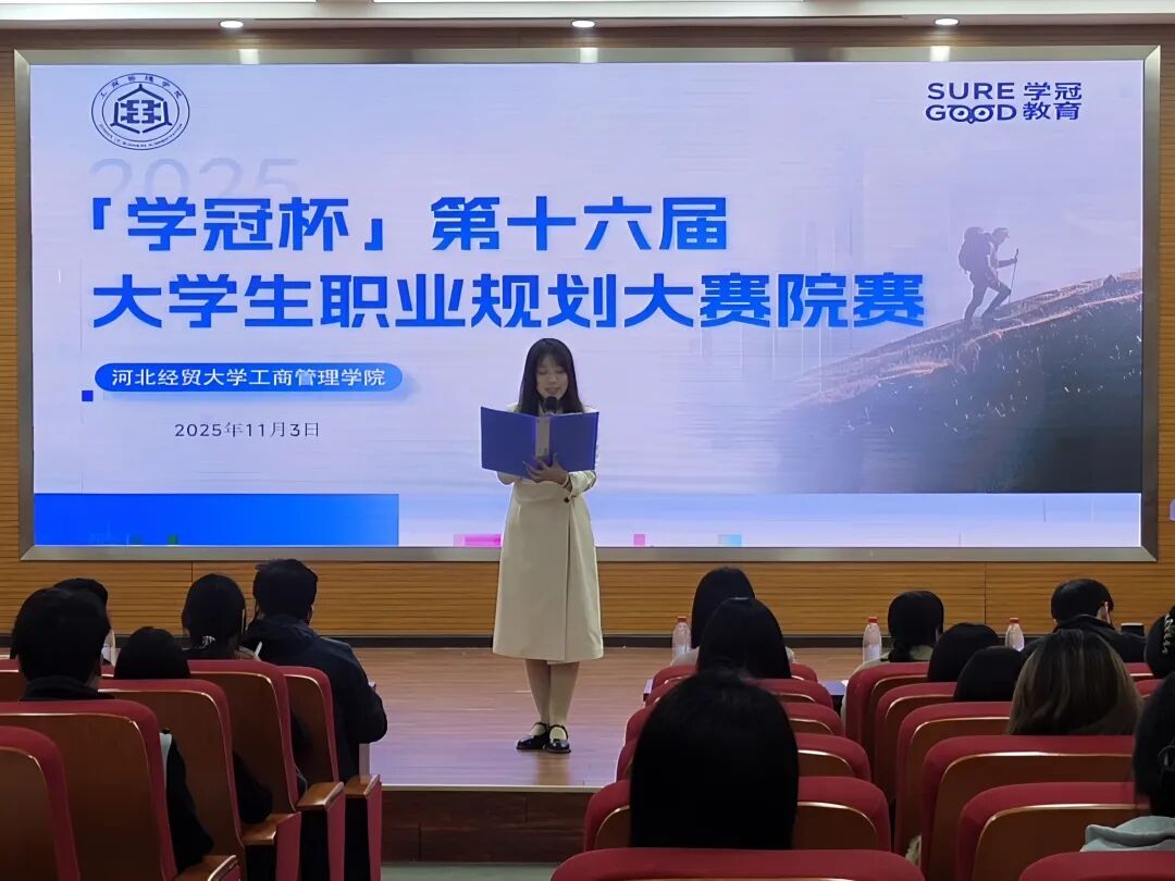 为助力工商学子系统梳理自我特质、锚定职业目标,破解规划迷茫、降低求职试错成本,推动管理学理论知识与真实行业需求深度融合,明晰专业能力在多元职业场景中的实践路径,实现以赛赋能,11月3日,太阳成集团tyc539开展了第十六届老员工职业规划大赛院赛。公司党委副书记宋欣、正处级辅导员马章山、团委书记(员工工作办公室主任)王晓东、人力资源管理系主任杨鹏、专任教师刘爽、就业联络员赵靓丹担任评委,特邀学校就业指导服务中心楚晓梅老师莅临指导,本次比赛由院主持队成员杨佳烨主持,部分员工观摩。