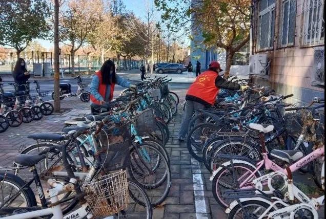 活动伊始,志愿者们根据清扫区域进行了分工。随后,志愿者们携带准备好的清洁工具来到各自负责区域,互相配合,集中清扫。紧接着,志愿者们默契配合,又将区域内的自行车摆放整齐,有效改善了自行车停放杂乱无章的现象。经过志愿者们的不懈努力,区域内的环境焕然一新。