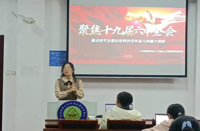 11月29日,2020级智慧工商管理新财经实验班召开“学习党的十九届六中全会精神”主题班会。此次班会由班级辅导员梁泽锋组织策划,团支书冯斯雅主持,2020级智慧工商管理新财经实验班全体同学参加。
