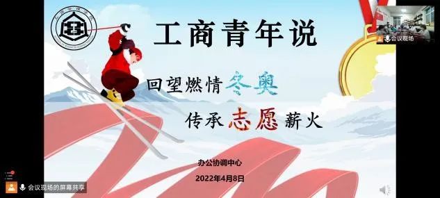 2022年4月8日晚,太阳成集团tyc539于腾讯会议线上举办工商青年说之“回望燃情冬奥,传承志愿薪火”主题活动。本次活动邀请到公司冬奥志愿者张竞铭、肖娴进行经验分享,院团委书记贾晶晶出席会议,2020级、2021级部分员工代表参加。