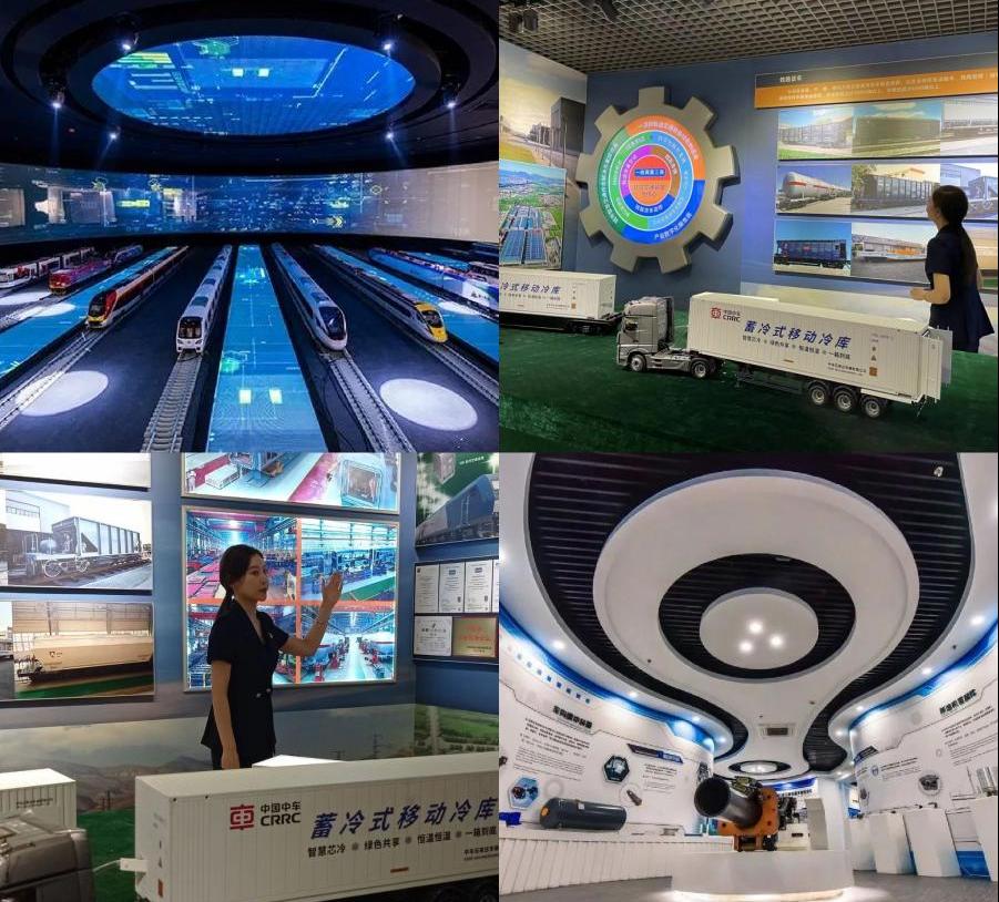 “筑梦”小分队在工作人员的带领下,来到中国中车厂史馆、党史馆进行参观。在讲解员的引导和讲解下,在厂史馆展厅观看了公司的历史沿革、阶段状况、发展远景等相关情况,学习了清洁能源风力发电、地铁打扫卫生的工作原理等。