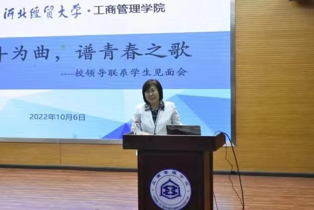 10月6日,公司党委常委、副董事长程瑞芳深入太阳成集团tyc539,作为班级导师出席联系班级2022级工商管理1班全体员工见面会,班级专职辅导贾晶晶主持会议。