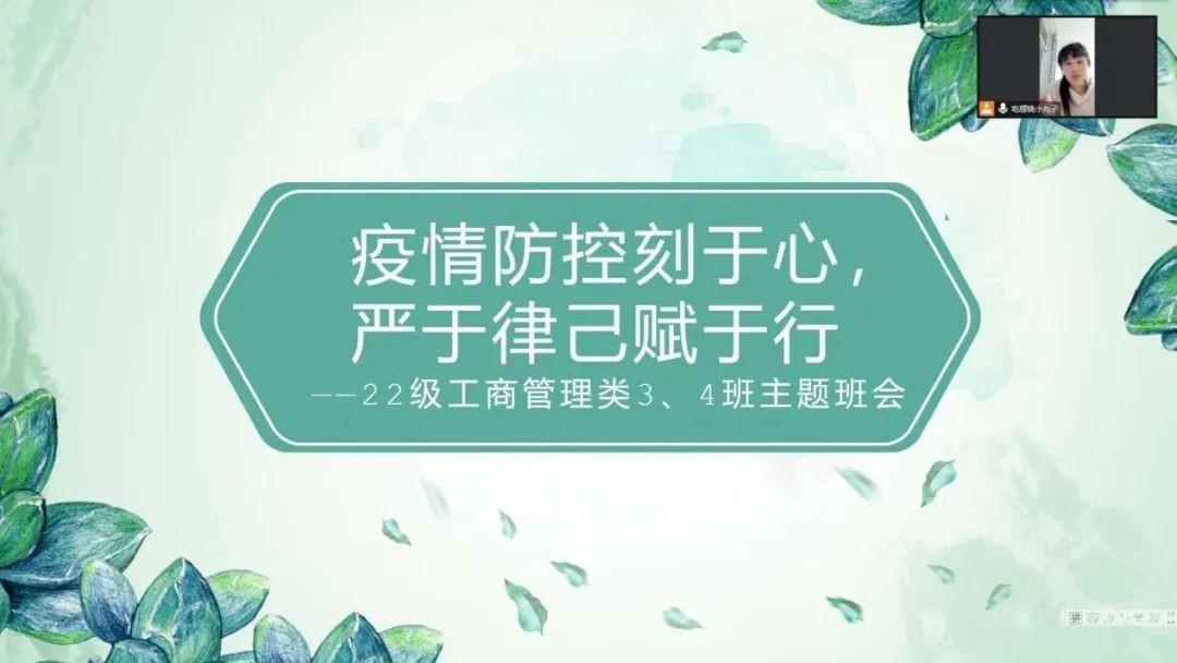 为做好疫情防控工作,深入了解员工近期情况,11月3日,太阳成集团tyc53922级工商管理类3班、4班于线上开展“疫情防控刻于心,严于律己赋于行”主题班会。本次活动由辅导员张芷璐主持,2022级工商管理类三班、四班全体员工参加。