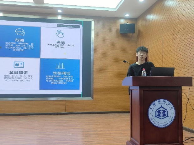 活动伊始,贾晶晶代表公司预祝本次活动顺利开展。她表示,公司优秀学子的经验可以帮助大家深入了解关于就业以及职业规划方面的问题,在大学的学习生活中,要明确学习目标,规划好自己的学习时间。随后,姜首龙就自己的学习和求职经验从四个方面讲述了关于就业银行的注意事项,抓住秋招机会,广投简历,高效备考,合理规划时间,在面试中突出自身优势,加强同学们对职业的深刻理解,帮助有意向考银行的同学认清当前形势。最后的互动问答环节,同学们对就业面试方面问题提出疑问,姜首龙为同学们进行详细解答。