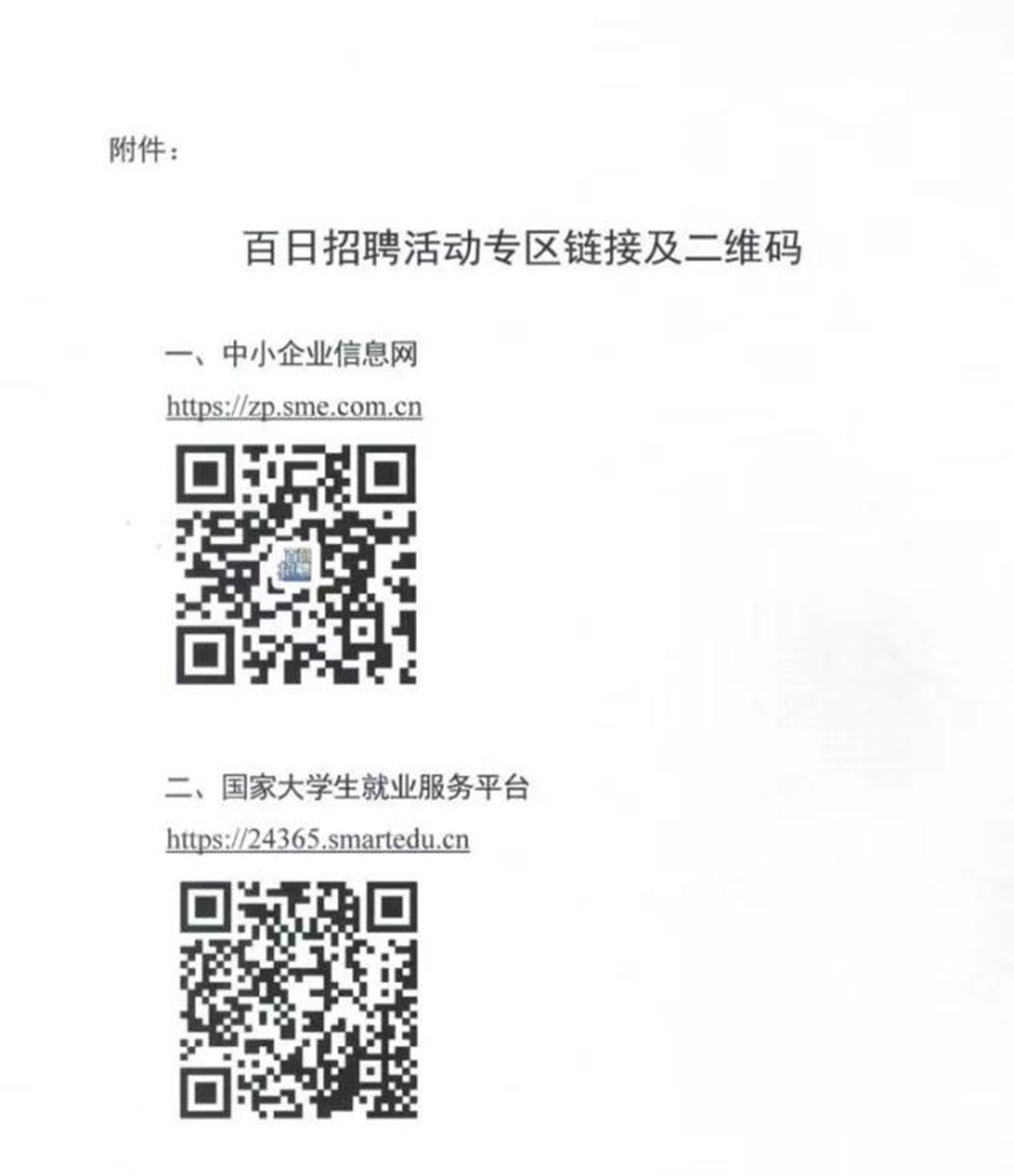 为推进校企合作不断深入,合作共建广阔的就业平台,现向公司毕业生进一步加强招聘通知的宣传,同学们可登录百日招聘活动专区网址(https://zp.sme.com.cn)或扫描下方二维码了解招聘详情。