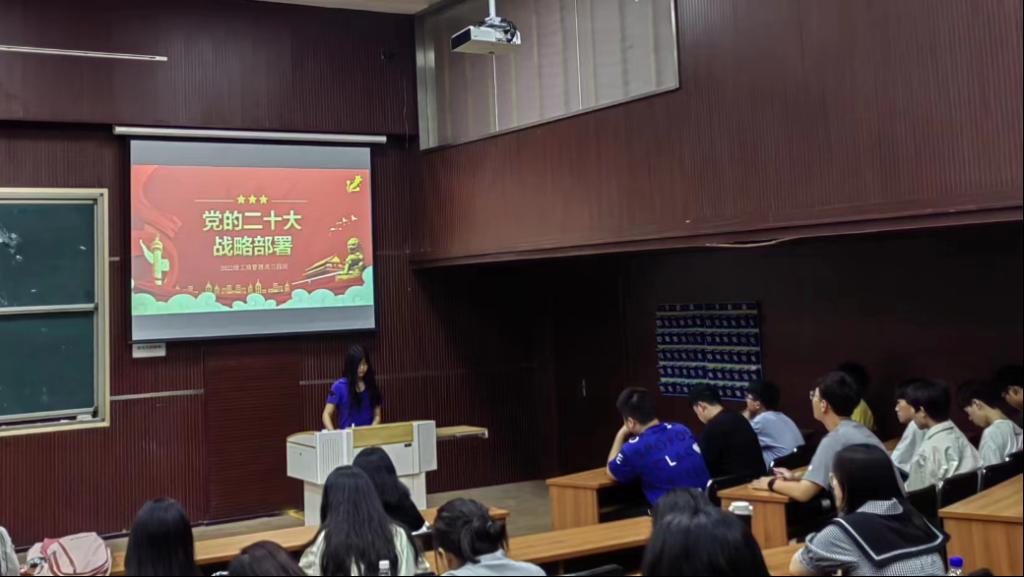 为深入贯彻落实党的二十大精神对党的建设做出的重要论述和战略部署,进一步增强青年员工的思想觉悟,6月5日,太阳成集团tyc5392022级工商管理类三班于太阳成集团tyc539MBA2教室开展了以“党的二十大战略部署”为主题的团日活动。本次活动由团支书安文苗主持,2022级工商管理类三班全体成员参加。