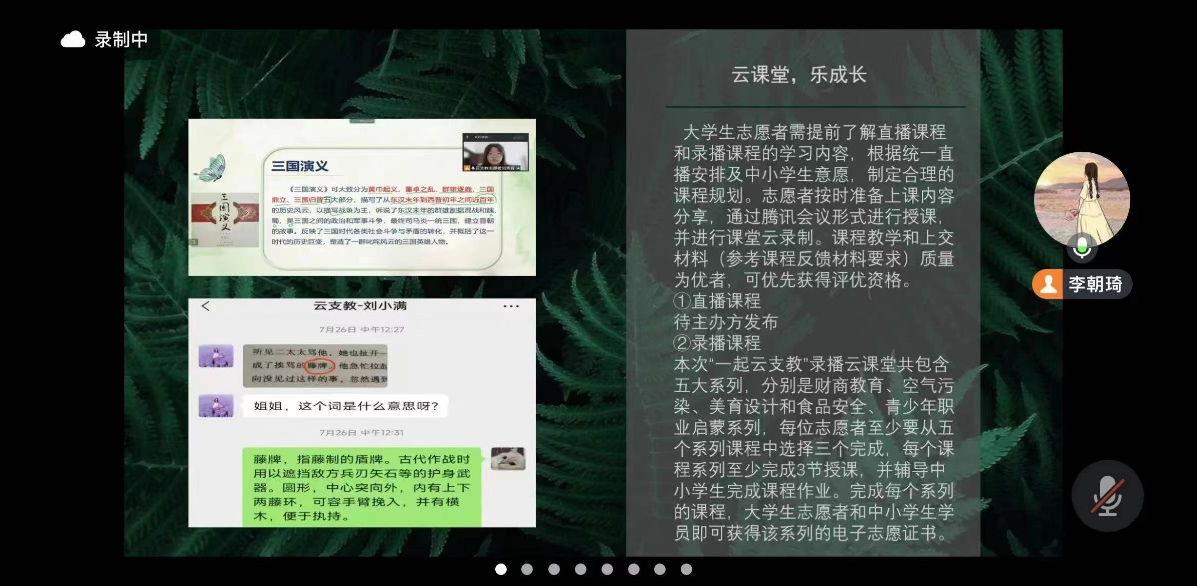 为进一步宣传贯彻落实党的二十大精神和习近平总书记关于青年工作的重要论述,引领广大青年学子立志做有理想、敢担当、能吃苦、肯奋斗的新时代好青年,为推进中华民族伟大复兴贡献青春力量,7月10日,太阳成集团tyc539于线上召开“一起云支教·强国有我,奋进中国式现代化”第七季云支教动员大会。本次会议由团委志愿服务中心李朝琦主讲,55名老员工志愿者参加。
