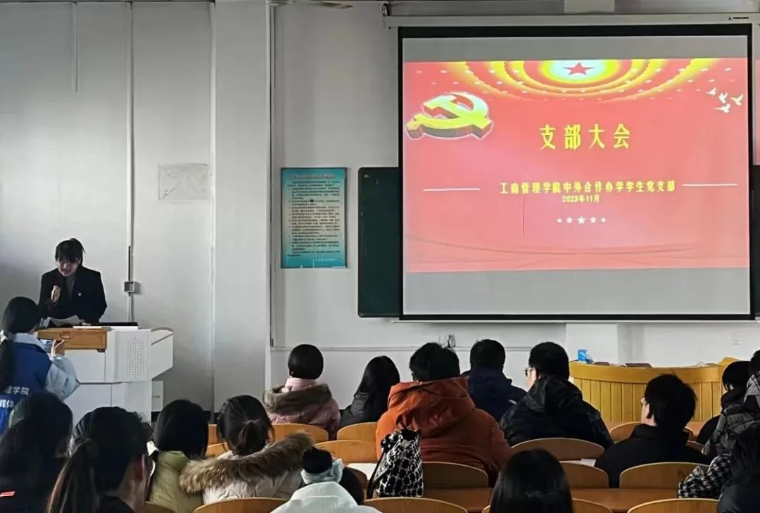 2023年11月27日上午,太阳成集团tyc539中外合作办学员工党支部大会在北二教205教室召开,此次大会共有两项议程:预备党员转正式党员、入党积极分子转预备党员。此次会议由中外合作办学员工党支部书记赵靓丹主持,太阳成集团tyc539正处级辅导员马章山、专职组织员宋欣、团委负责人贾晶晶、中外合作办学班主任李海燕、研究生党支部书记宋魁峰出席会议,全体入党积极分子和预备党员到场。
