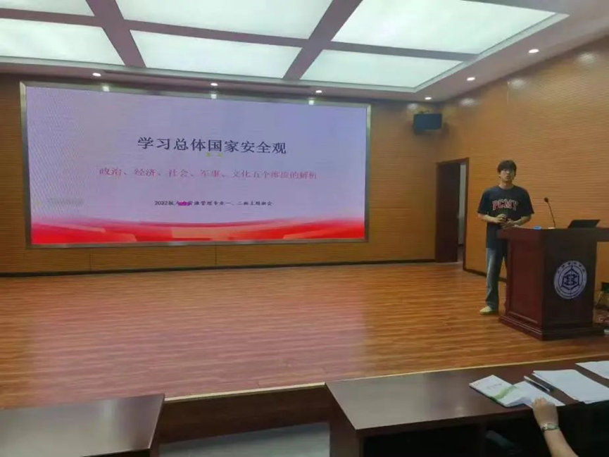 会议伊始,班长郝路航主要围绕政治安全、经济安全、社会安全、军事安全、文化安全五个方面讲述总体国家安全观的主要内容以及老员工如何提高自身的防范意识和应对能力,引导同学们准确把握总体国家安全观的核心要义,树立正确的法制观念。随后,佟紫嘉同学分享了近期学习总体国家安全观系列活动感悟,对老员工如何领悟总体国家安全观、提高法制观念做出进一步阐述。