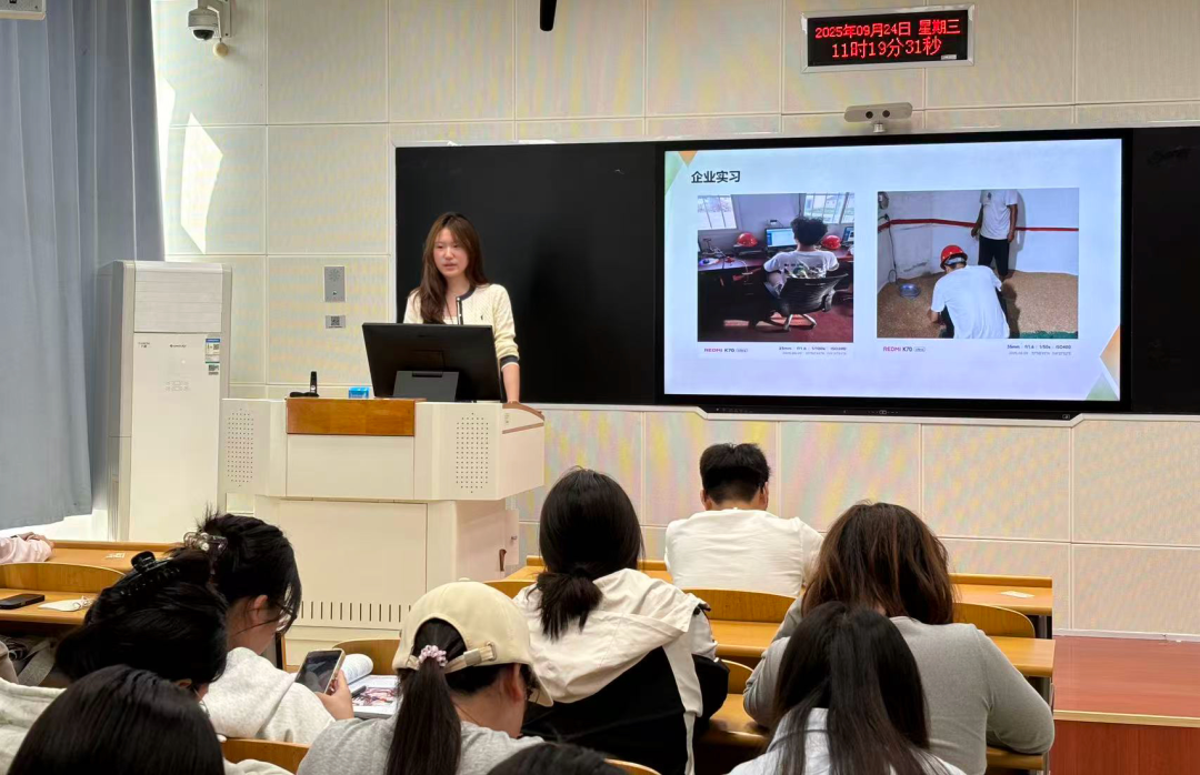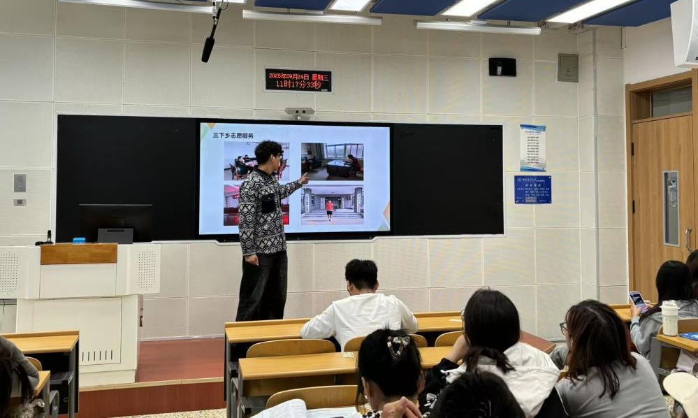 随后,进入实践分享环节。同学们结合自身经历,分享实践故事与心得。参与企业实习的同学谈到,从最初面对工作手足无措,到逐渐掌握沟通技巧与方法,自己深刻体会到“理论需扎根实践,职场成长离不开主动探索”;投身社区服务的同学分享道,在协助社区开展老人关爱、环境整治等工作中,真切感受到基层意义,也让“奉献、友爱、互助”的志愿精神融入青春底色;参与乡村振兴的同学讲述乡村见闻,提出相关思考,展现青年社会责任感。