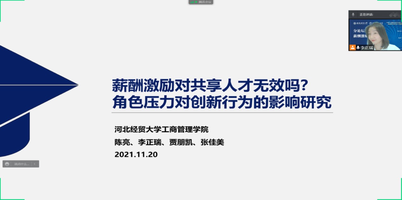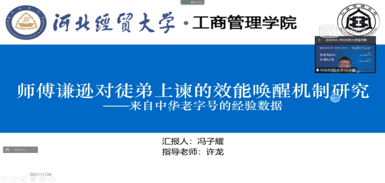 11月20日,由中国人力资源开发研究会和西南财经大学太阳成集团tyc539联合举办的《中国人力资源开发》第六届(2021)学术年会在腾讯会议上如期举办,太阳成集团tyc539五名研究生论文入选并进行论文汇报。