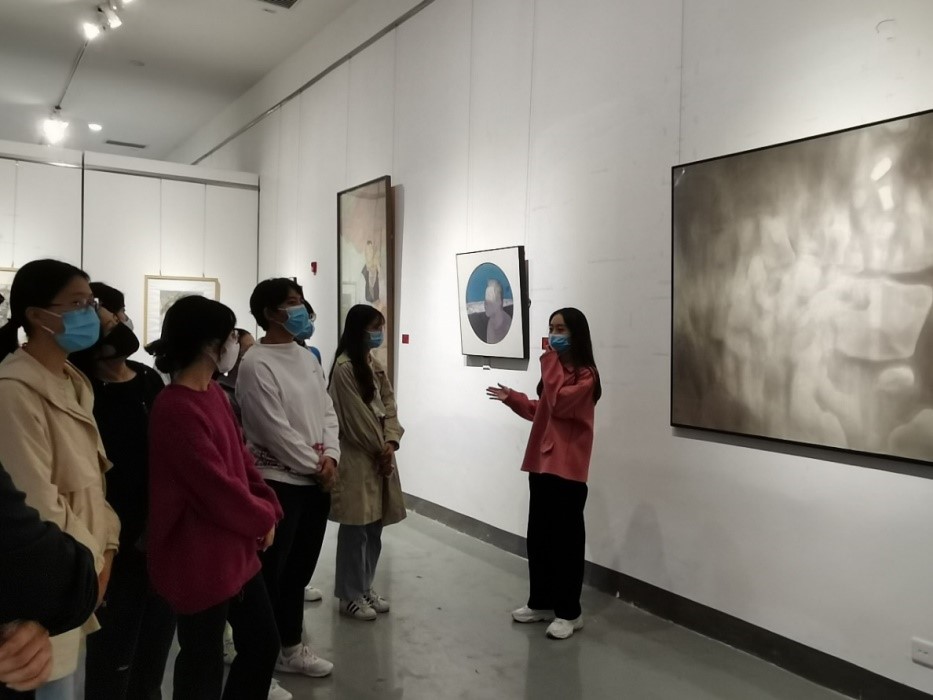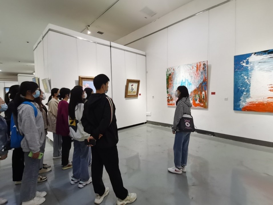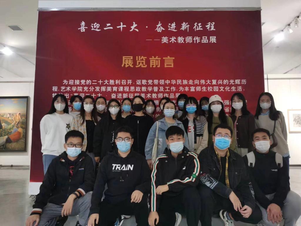 庆祝党的二十大胜利召开,讴歌党带领中华民族走向伟大复兴的光辉历程,艺术公司推出“喜迎二十大·奋进新征程”美术教师作品展。10月26日下午,公司组织、支部书记宋魁峰带队,2022级工商管理学术型研究生参观了此次展览,艺术公司2020级美术硕士郭程晨、程冰艳对展览作品进行了详细讲解。