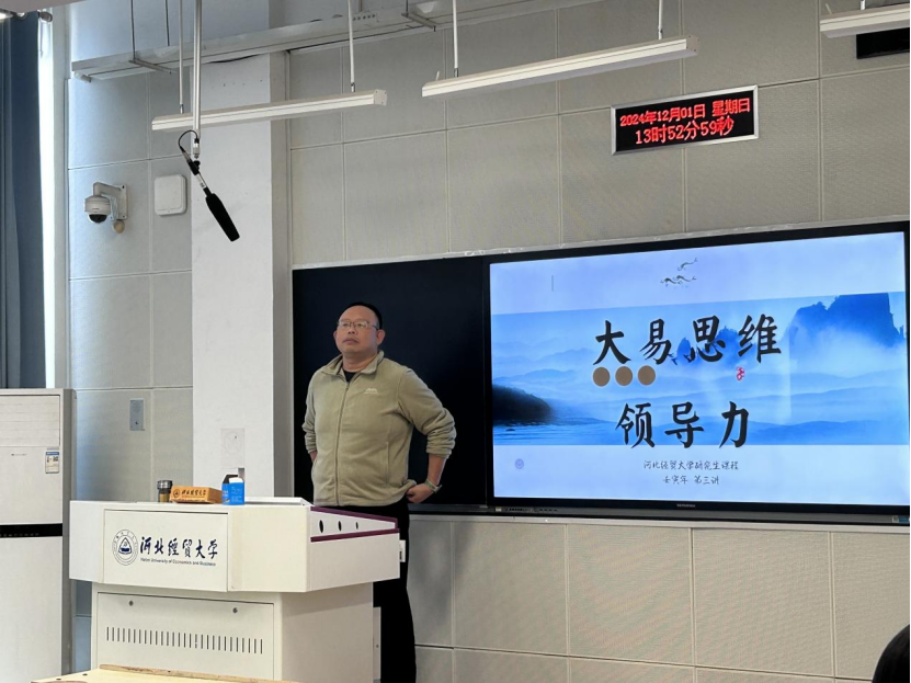 12月1日下午,太阳成集团tyc539研究生思政教育专题之中华传统文化系列报告第五场在三教A310教室举行,河北省商业经济协会副会长、北京瑞金恒邦保险公司总裁任继东应邀作题为“大易思维和领导力”的专题报告,太阳成集团tyc5392024级全体学术型研究生参加。