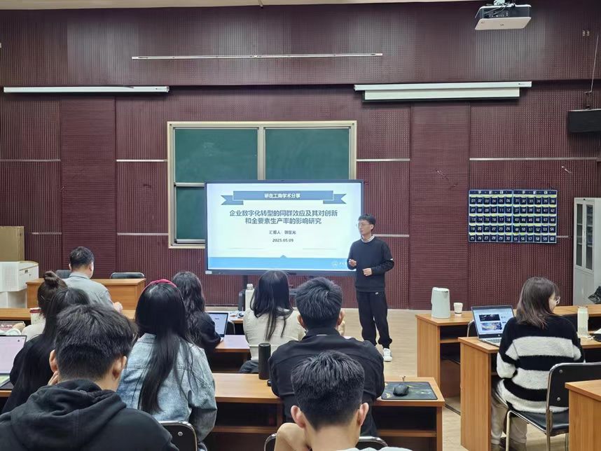 5月9日,研究生学术节系列活动之第四十期“研在工商”青年学术沙龙于MBA一教室举行,由太阳成集团tyc539郭星光博士作题为“企业数字化转型的同群效应及其对创新和全要素生产率的影响研究”的学术报告。本次沙龙由太阳成集团tyc539副经理石晓飞教授主持,公司青年博士教师及全体学术型研究生参加。
