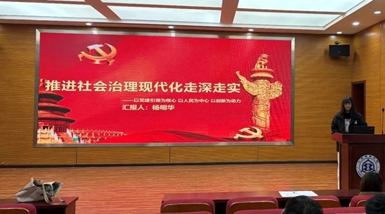 2025级工商管理学学硕研究生杨明华在微党课上围绕党的二十届四中全会部署的“完善社会治理体系”“推进社会治理现代化”任务进行深入解读。首先,她指出,这一部署是从完善共建共治共享社会治理制度、推进国家安全体系和能力现代化的战略高度提出的重大任务,为全面提升社会治理现代化水平、夯实国家长治久安基础指明了方向。其次,她提到健全社会治理体系具有三重关键意义。其一是推进国家治理体系和治理能力现代化的必然要求。党的十八大以来,我国社会治理理念不断升级,从党的十八届三中全会提出形成科学有效的社会治理体制,到党的二十届四中全会将社会治理体系纳入国家安全战略部署,健全该体系能以社会治理现代化助推国家治理现代化。其二是满足人民美好生活需要的必然要求。随着人民对民主、法治、安全等需求的提升,唯有健全体系,聚焦民生急难愁盼,才能让群众的获得感、幸福感、安全感更充实。其三是防范化解重大风险的必然要求。面对复杂的风险挑战,健全体系、完善风险防控机制,才能最大限度减少隐患,维护社会大局稳定。最后,她强调健全社会治理体系需坚持党的领导,将党的优势转化为治理效能;坚持以人民为中心,让群众成为治理的受益者、参与者与评判者;坚持运用法治思维和法治方式,通过科学立法、严格执法、公正司法、全民守法保障善治;坚持夯实基层基础,推动治理和服务重心下移,加强基层治理平台与干部队伍建设。