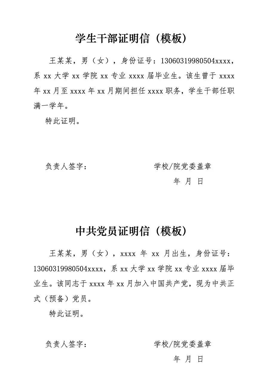 2.员工干部经历、中共党员证明信规定格式及表述模板