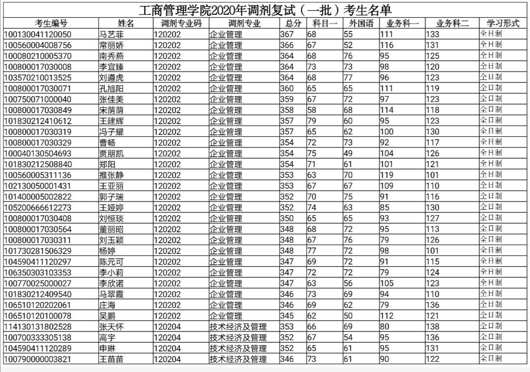 太阳成集团tyc5392020年调剂复试(一批)考生名单