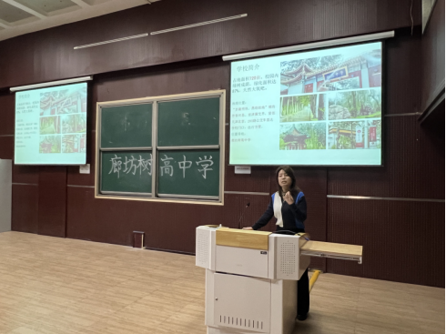 活动伊始,树高中学招聘宣讲人向同学们简要介绍学校的优美环境、先进设施和标准化管理等内容,并以播放本学校宣传PPT的形式,促使员工们更深入了解学校。然后,分别从发展前景、教师待遇、招聘岗位等方面出发,进行全方位多角度地介绍,帮助学校和员工之间进行双向选择。最后,说明本学校的面试流程及简历的投递方式,并欢迎同学们积极踊跃报名。