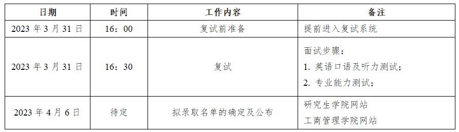公司2023年研究生复试录取工作,将分为复试资格的审查与网上面试考核、拟录取名单的确定等几个环节。各环节的相关要求与规定如下: