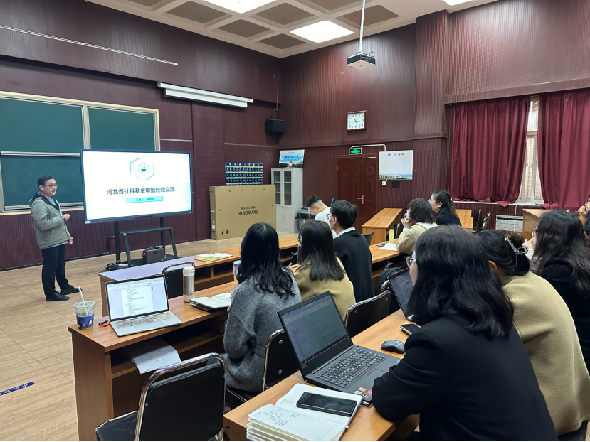 孙进书博士根据自己申报河北省社科基金项目的经验与体会,从项目的选题和论证活页写作的注意事项方面进行了经验介绍。孙博士首先对项目管理办法和指南进行了深入分析,随后针对选题和论证活页的写作技巧做了详细介绍,为在座的老师提供了新的研究思路和方向。他提出在申报高层次项目时,选题上要重视破题的重要性,要关注理论、研究主题和实践之间的联系,紧贴河北省政策方针,聚焦重大理论和现实需求;论证上要实事求是、言简意赅、归纳精准、逻辑清晰、环环相扣。