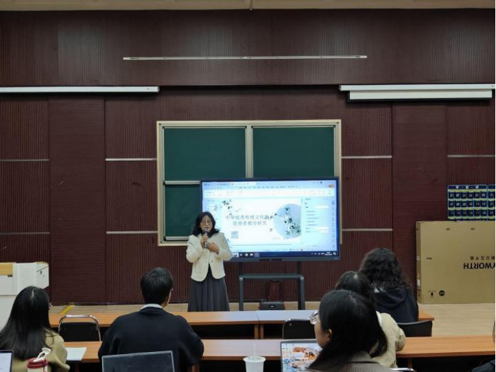 紧接着,张静老师细致梳理了国内学者和教育工作者对这一课题的研究成果,从文献分析的视角向在座教师清晰展示了学界的研究现状,为课程优化提供了宝贵的参考与启示。