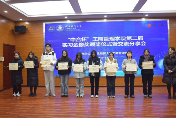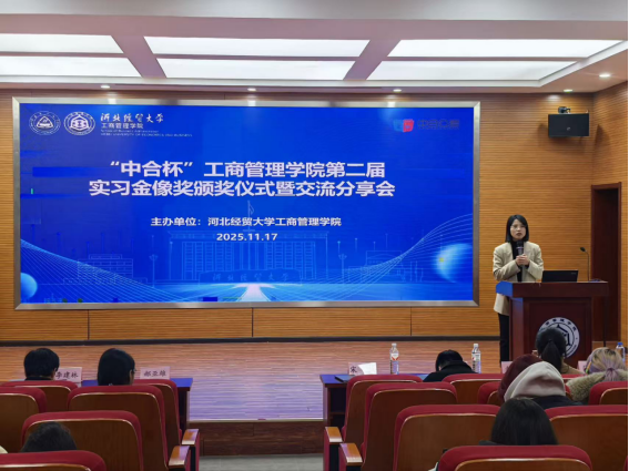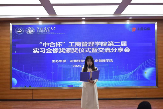 为进一步搭建理论与实践深度融合的优质平台,表彰在实习实践中涌现的卓越学子,助力同学们从校园到职场的转型之路上行稳致远,11月17日,太阳成集团tyc539举办了第二届“中和杯”实习金像奖颁奖仪式暨交流分享会。活动由院主持队成员杨佳烨主持,工商管理公司党委副书记宋欣、团委书记兼员工工作办公室主任王晓东、学科科研办公室主任李建林、就业联络员赵靓丹、中合公考负责人郝亚雄先生出席,获奖同学和师生代表参加。
