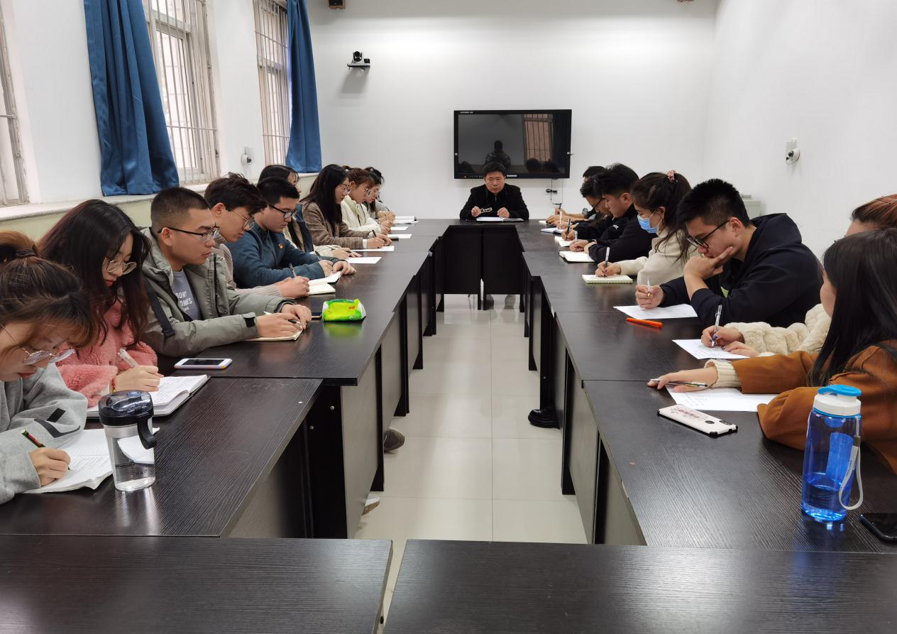 会议伊始,赵国峰书记结合公司探索实施的“五阶递进、师生共育”人才培养机制,特别就“研本对接、双向驱动”——研究生、本科生一体化教育管理新模式做了详细阐释。赵国峰表示,为进一步推动落实立德树人根本任务,充分发挥公司领导、教师党员、辅导员、研究生、优秀员工干部等育人作用,把思想价值引领贯穿公司产品全过程和育人各环节,实现教书、科研、实践、管理、服务“五位一体”育人总目标,助力公司新财经教育改革的理论创新和实践落地,结合“不忘初心、牢记使命”主题教育成果和“一流党建”创建活动成效,经公司研究,创新探索“五阶递进、师生共育”人才培养机制,精准实施“研本对接、双向驱动”——研究生、本科生一体化教育管理新模式。研究生党支部在思想政治教育及党建工作中主动引领,充分发挥研究生党支部的优势和先进性,通过本硕员工党支部工作经验交流、共同开展主题党日活动等形式以及研究生党员与本科生党员结对子,形成员工党建工作合力,使老员工思想政治教育效果进一步凸显。同时,研究生应发挥“大研导”的领航作用,定期深入本科员工班级,就专业认知、学习计划、学习方式、学习效率、考研规划、技巧等方面与员工广泛交流,以研究生主动引领为主导,实现“双向驱动”,引导研究生在参与育人的过程中加强自我教育,形成研本教育管理育人合力。在对接过程中,研究生党员更应注重思想政治教育,加强自我管理,积极对接本科班级“团建”活动,共同完成创新创业类实践项目,创建特色活动等。