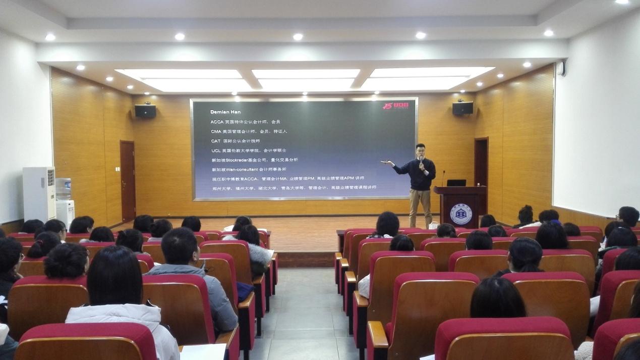 为帮助20级新生适应新的学习环境和学习,提前做好职业生涯规划,增强自身核心竞争力,工商管理院于2020年11月26日晚在学术报告厅举办学业和职业规划专题讲座。中博教育国际注册会计师、高级业绩管理课程讲师韩冰老师受邀担任主讲嘉宾。石晓飞副经理,公司2020级工商管理类部分同学以及辅导员张贺东、范家明参加本次讲座。