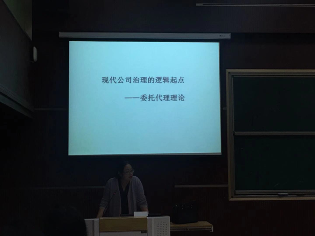 卞娜从公司制度的发展阶段切入,指出公司所有权和经营权分离会导致一系列问题,公司所有权和经营权的分离意味着委托代理关系的形成,公司所有者和经营者利益背离意味着委托代理问题的出现,正因如此,公司治理应运而生。随后,又从委托代理理论的起源与发展、委托代理问题产生的根源、逆向选择等方面详细介绍了相关知识。本场专题报告深入浅出,引人深思,研究生受益匪浅,对委托代理理论有了全新的理解与认知。