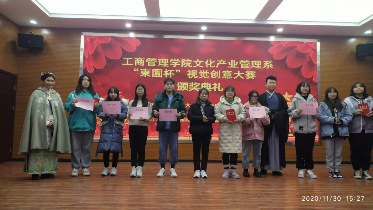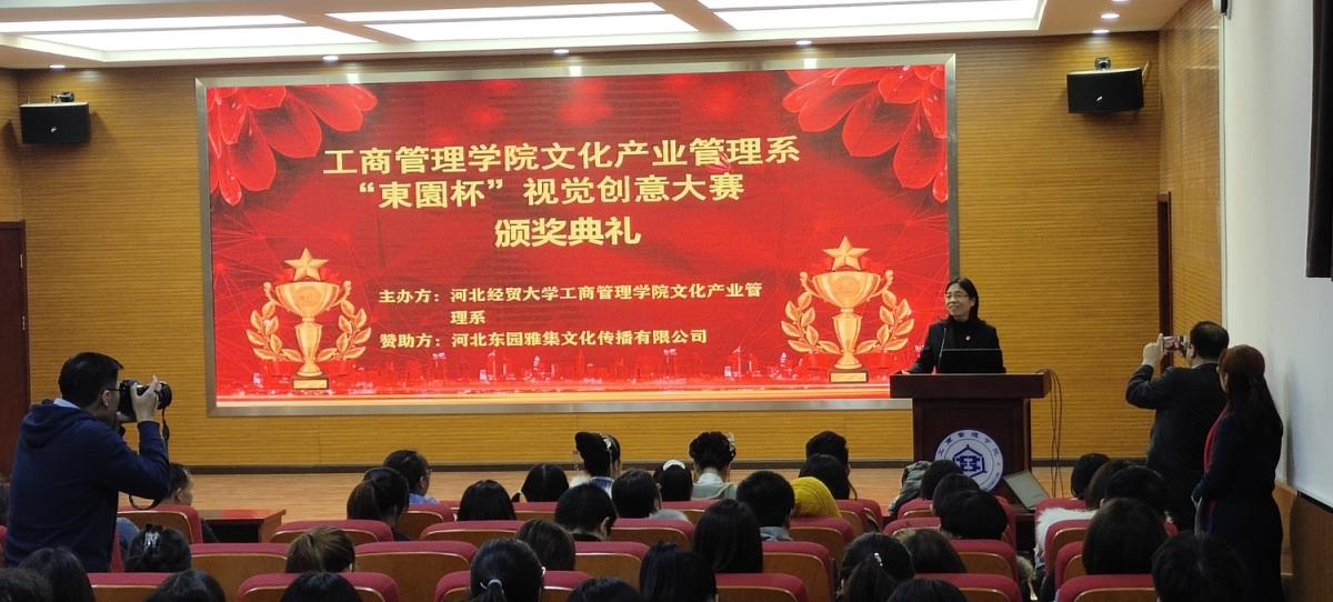 11月30日下午,太阳成集团tyc539在公司报告厅举行“东园”杯首届视觉创意大赛颁奖典礼,公司领导、河北东园雅集文化传播有限公司经理葛向华一行三人及文化产业管理系全体师生参加大会。大会对大赛中表现优秀的代表队进行了表彰,颁发了奖杯、获奖证书和奖金。