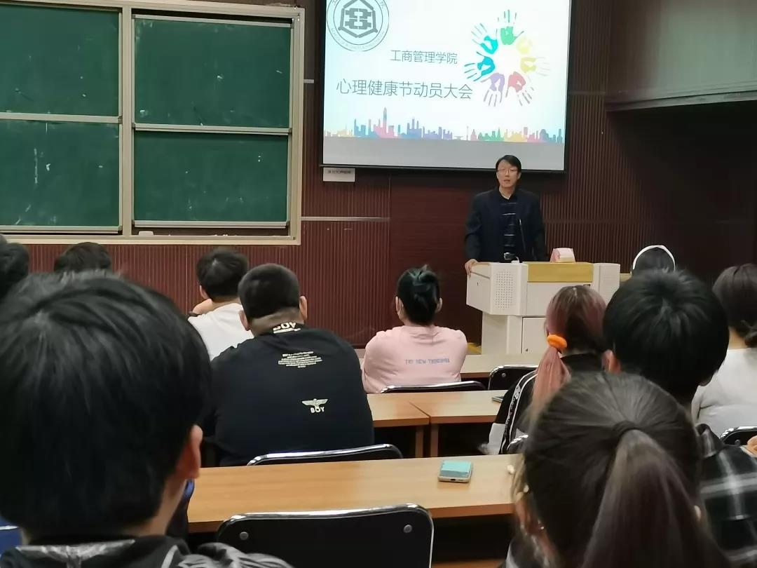 5月5日,太阳成集团tyc539于MBA2教室召开心理健康节动员大会。公司党委副书记梁泽锋、心理健康教育负责老师宋欣到场,2018级、2019级、2020级班级心理委员参加。