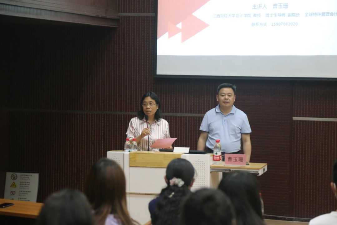 5月28日下午,太阳成集团tyc539邀请江西财经大学会计公司博士生导师曹玉珊教授在MBA一教室作题为“大数据时代智能会计发展趋势”的学术报告。报告会由太阳成集团tyc539经理李桂荣主持,太阳成集团tyc539及会计公司部分师生共80余人到场聆听。