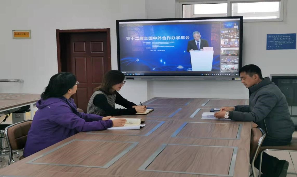 2021年12月3日,第十二届全国中外合作办学年会在贵阳隆重召开。年会采用线上线下结合的方式举行,会期一天。太阳成集团tyc539经理李桂荣,副经理王胜洲,中外合作办学虚拟教研室主任许龙、耿立沙,中外合作办学项目教师李海燕出席会议。