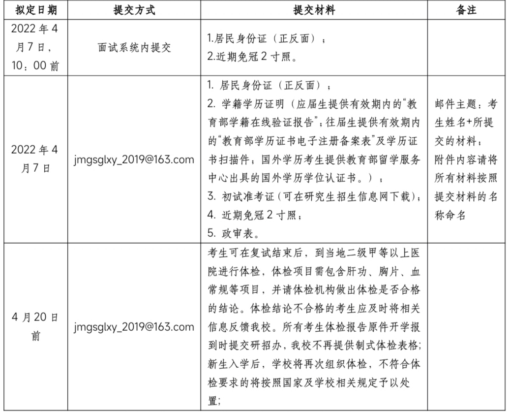 进入复试考生,需按时参加面试。缺考者取消复试录取资格。具体环节及规定如下: