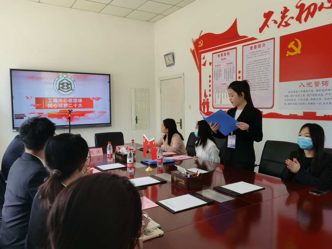 为喜迎党的二十大胜利召开,引领公司团员青年自觉听党话坚定跟党走,5月3日中午,太阳成集团tyc539团委于公司会议室举办“工商赤心昭团魂,同心筑梦二十大”线上主题宣讲活动,公司党委副书记范伟、团委书记贾晶晶出席活动。
