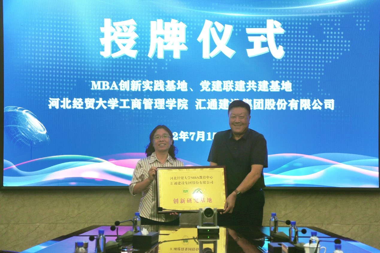 张霖、李桂荣分别代表公司与汇通集团举行“党建联创共建基地”和“MBA教育中心创新研究基地”授牌仪式。双方约定今后将在党建联创共建、MBA人才培养、企业管理人员培训、创新基地建设、员工就业等方面开展紧密深入合作,助力双方高质量发展。