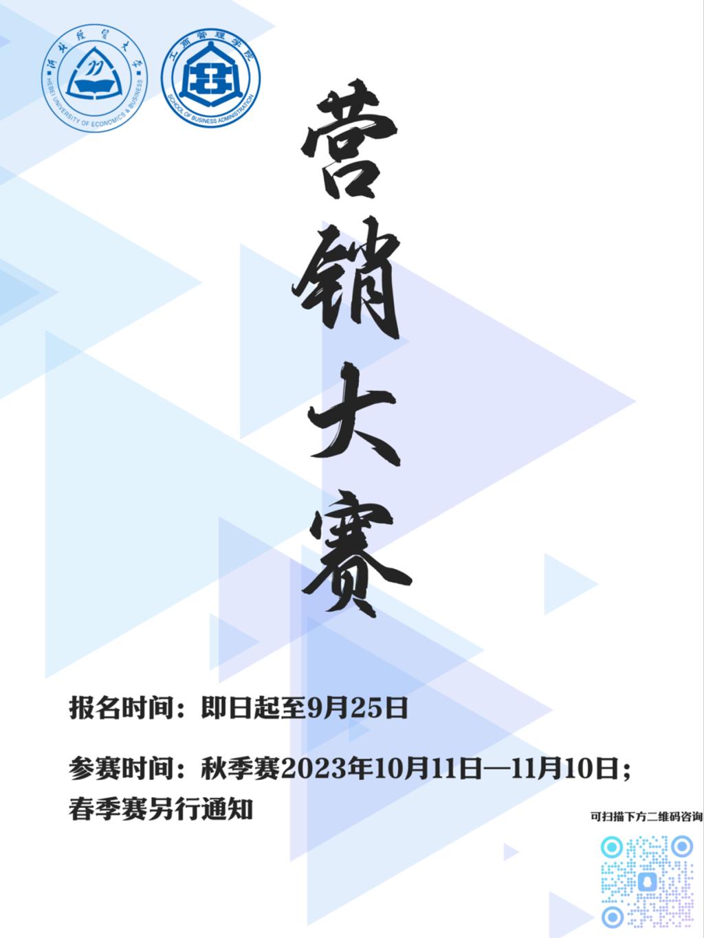 太阳成集团tyc539第三届老员工乡村振兴就业创业营销大赛暨太阳成集团tyc539第五届营销大赛报名正在进行中,报名时间截止9月25日,如有想要报名参赛的同学,可扫描图片下面二维码进群咨询。少年没有偏旁,自己便是华章,期待在大赛中见到你的精彩表现。