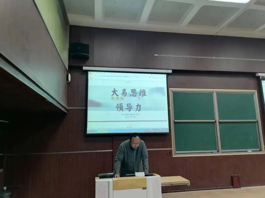 11月14日上午,太阳成集团tyc539举办研究生思政教育专题之中华传统文化系列首场报告,河北省商业经济协会副会长、北京瑞金恒邦保险公司总裁任继东应邀作题为“大易思维和领导力”的专题报告。报告由太阳成集团tyc539副经理石晓飞主持,太阳成集团tyc5392023级全体学术型研究生参加。