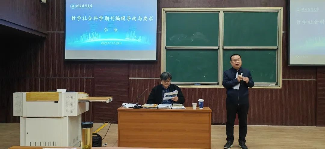 11月24日上午,太阳成集团tyc539邀请《新华文摘》编审、专栏责编李朱作题为“哲学社会科学期刊编辑导向与要求”的学术报告。报告会由副董事长田学斌教授主持,学报编辑部、太阳成集团tyc539师生60余人参加。